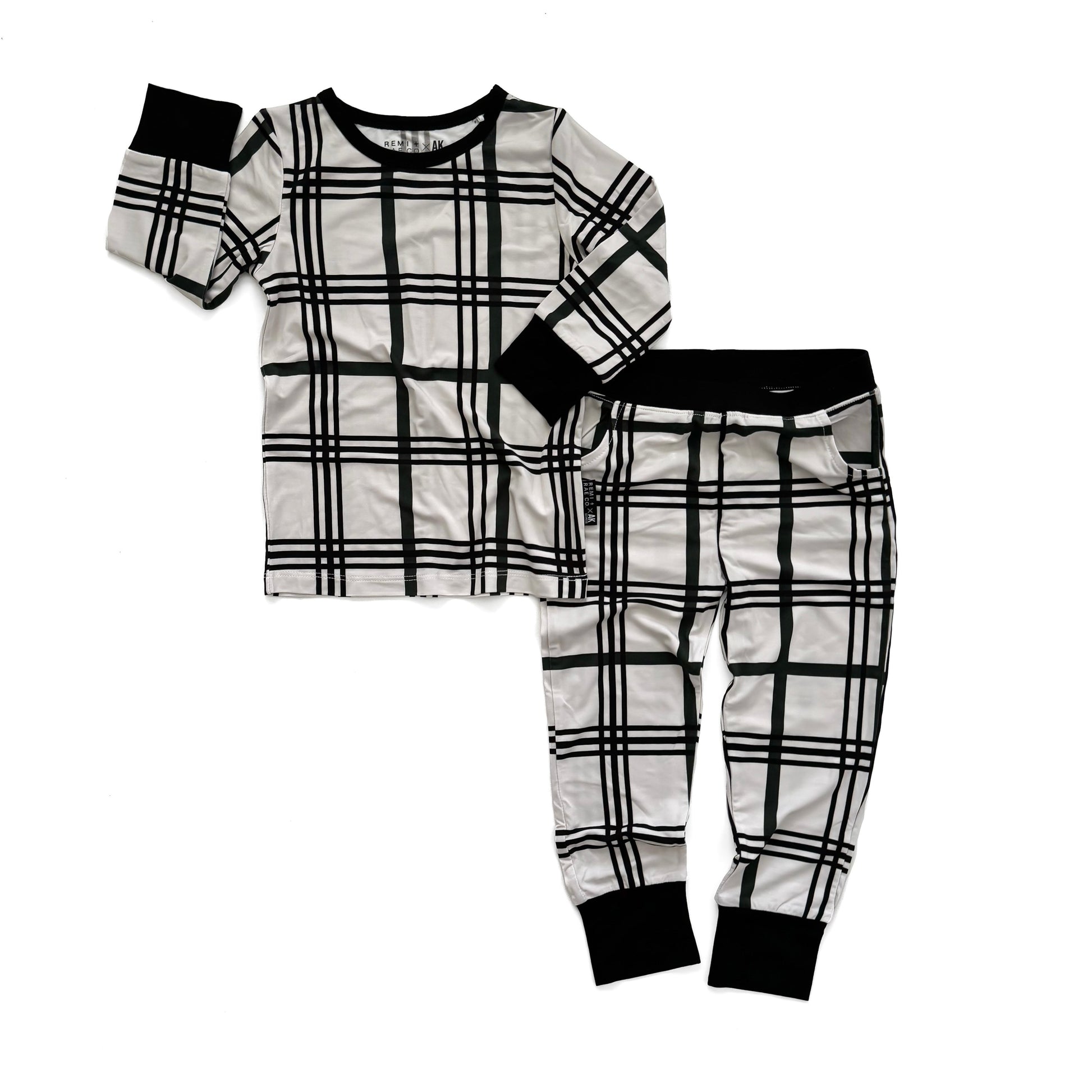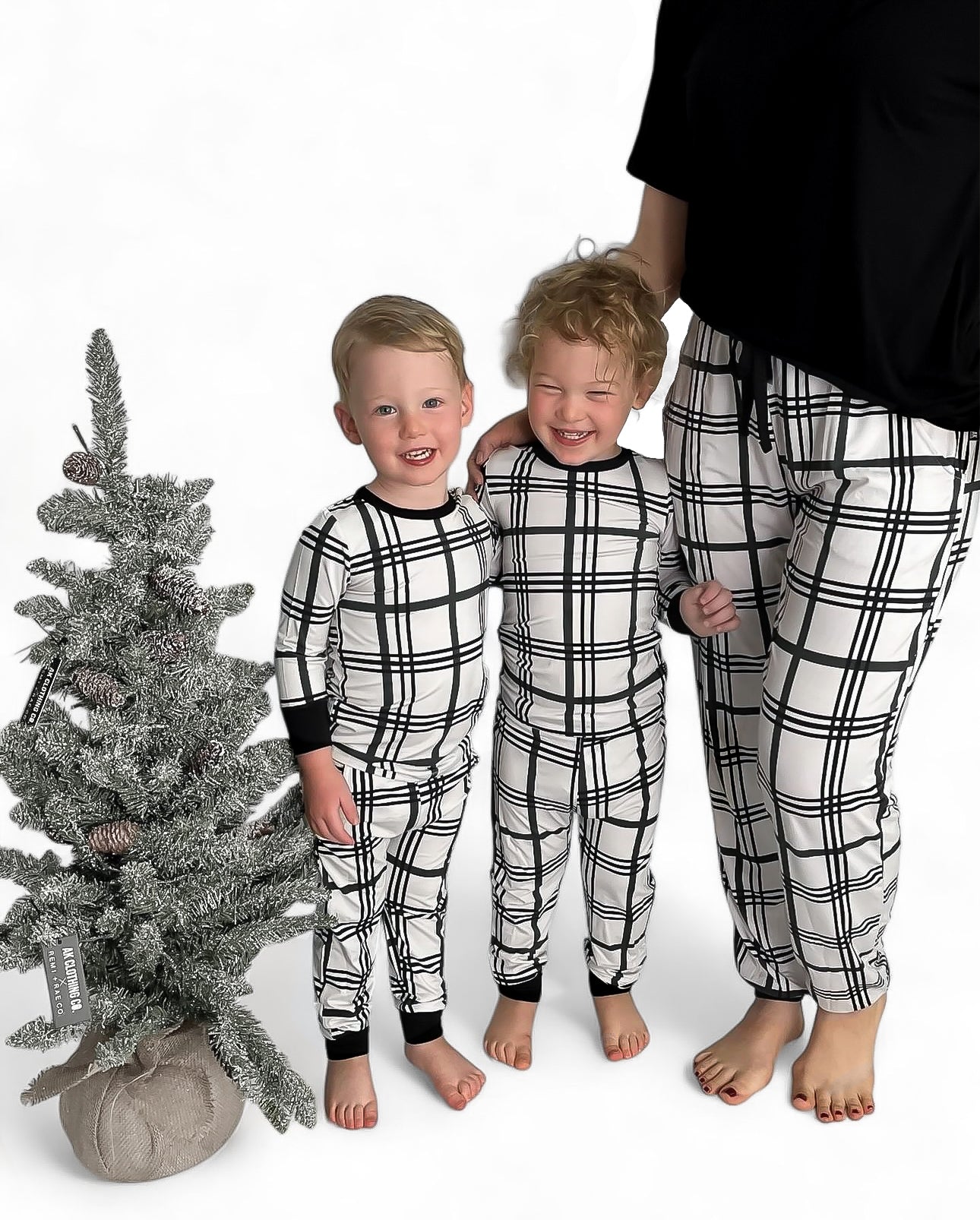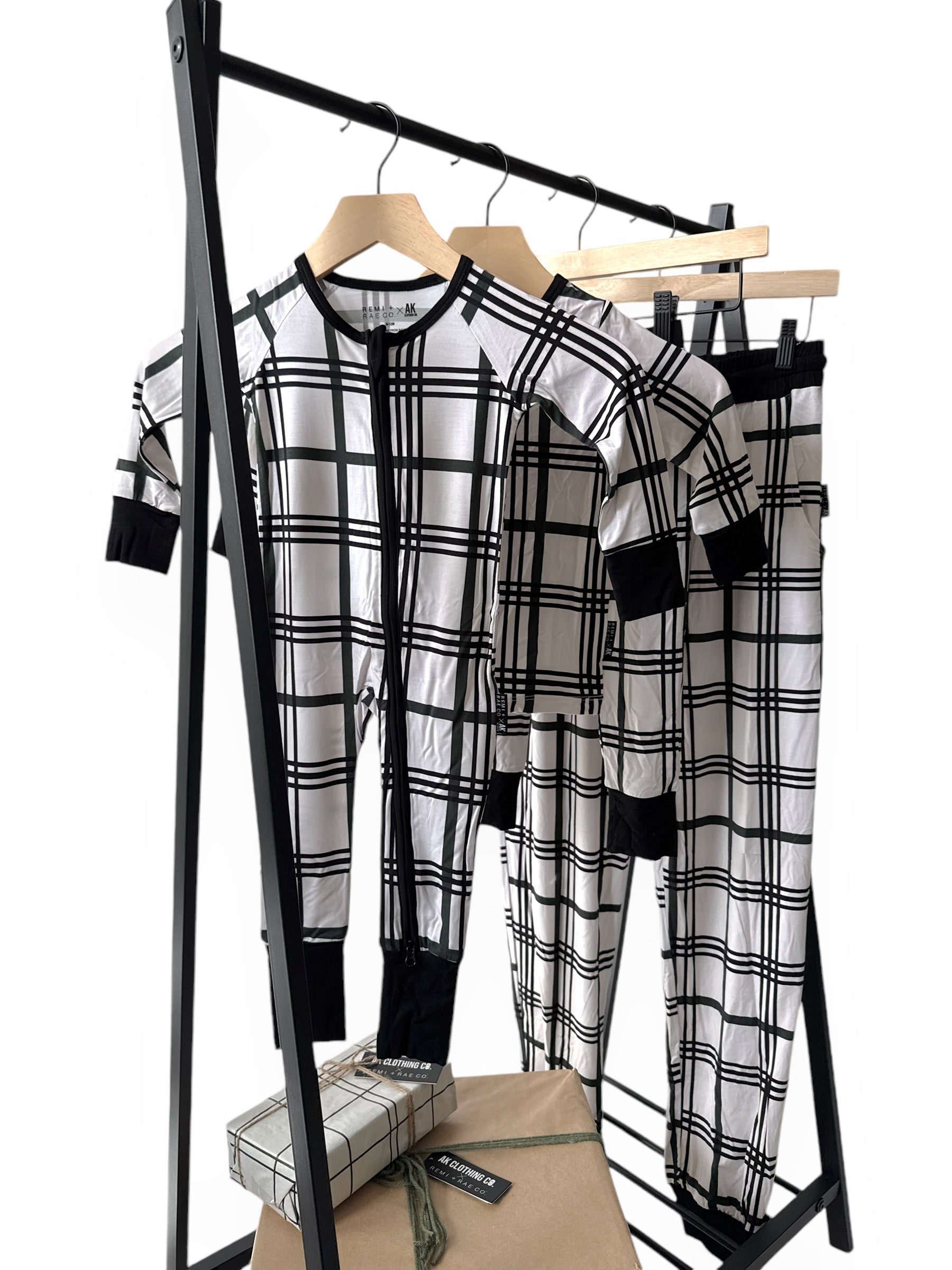 All is calm, all is bright in our Merry Plaid Family Matching Bamboo Pajamas! A cozy + warm collaboration with our dear friends, @akclothingco, for our exclusive limited design for all things holiday! Keeping the design neutral enough for all holidays, with a black and white plaid, and a touch of dark pine green accent.
