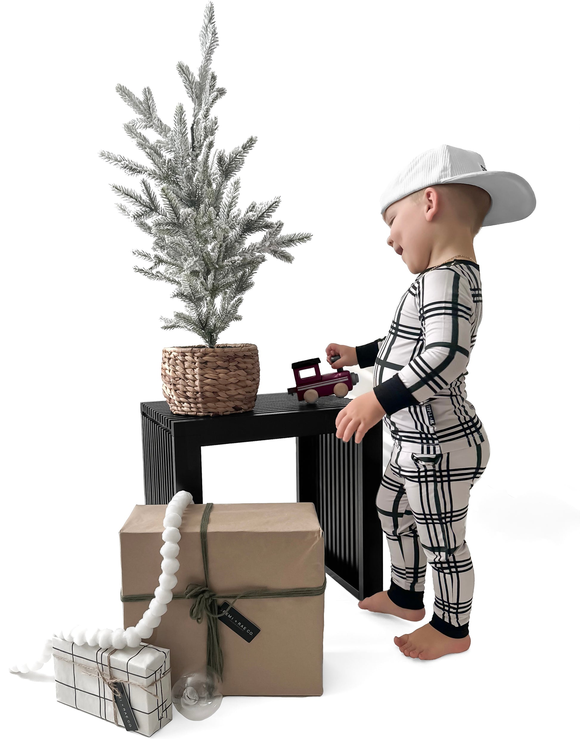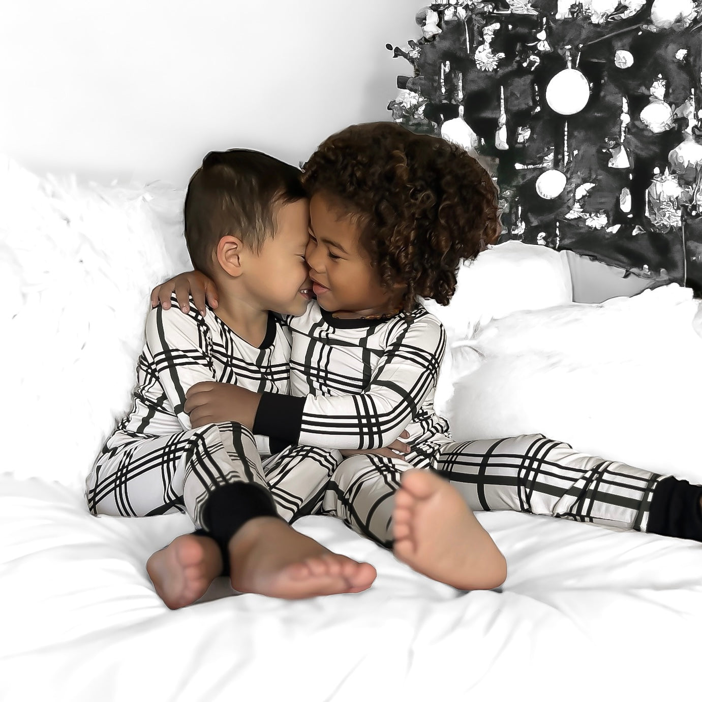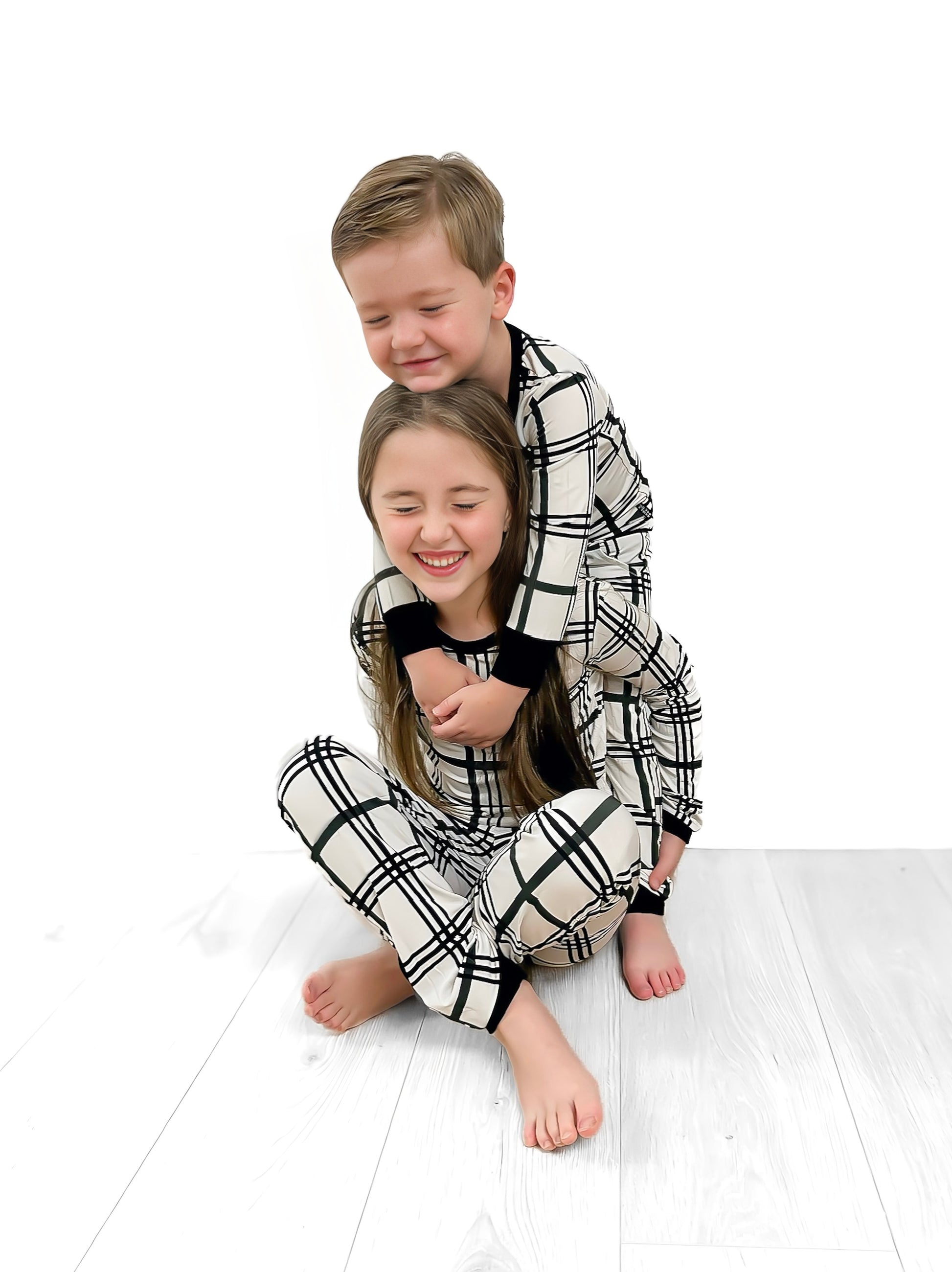 All is calm, all is bright in our Merry Plaid Family Matching Bamboo Pajamas! A cozy + warm collaboration with our dear friends, @akclothingco, for our exclusive limited design for all things holiday! Keeping the design neutral enough for all holidays, with a black and white plaid, and a touch of dark pine green accent.