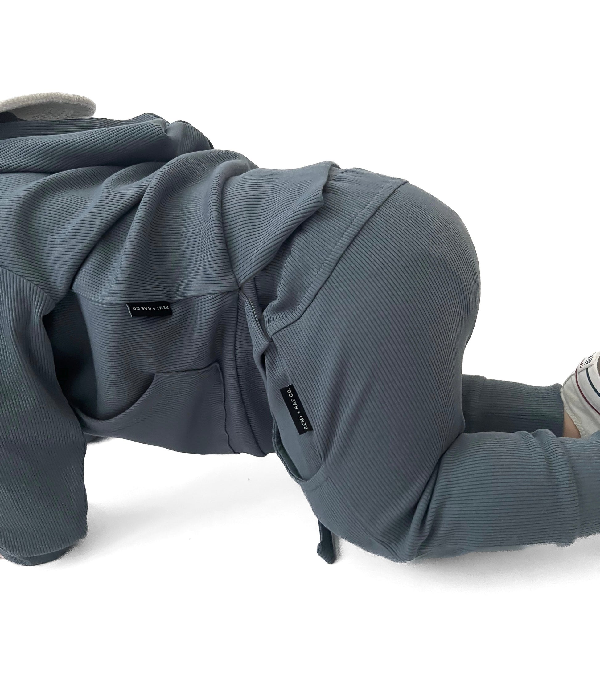 I love the ribbed joggers and this blue is the perfect color. It pairs with so many tees and looks adorable with the matching hoodie. Material is high quality, washes well, and the fit couldn’t be more perfect.
